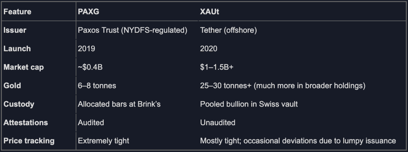 In short, PAXG was built for regulated institutions, while XAUt grew for the world that actually uses gold.